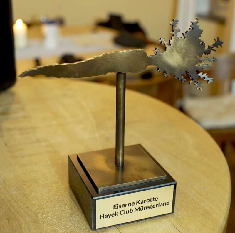 Der Hayek-Club MSL vergibt den Preis "Eiserne Karotte" an den Minister Heiko Maas wegen des Netzwerkdurchsetzungsgesetzes, welches in 2017 durch den Bundestag gebracht wurde.